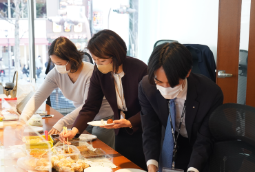 2022年に創立50周年を迎えたアシストですが、この50年間「社員食堂」が設置されたことはありません。しかし、みんなが一品ずつ持ち寄るだけで、急ごしらえの「社員食堂」のような場が設定できます。