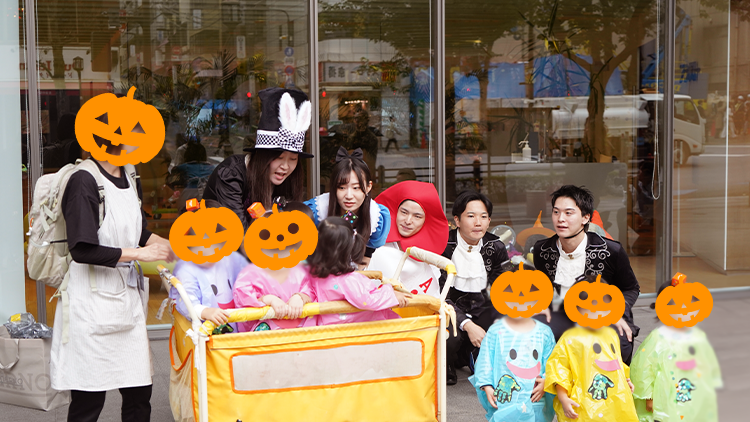 このとき、アシストのメンバーが仮面をかぶっていたのが怖かったのか、泣きながら転んでしまうかぼちゃさんも……。
