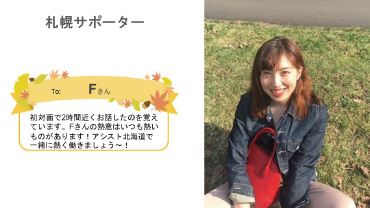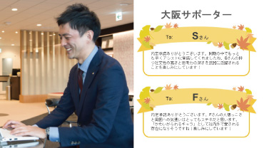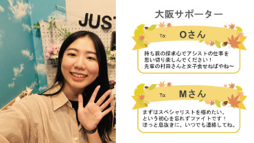 ウェルカムメッセージをいただいて、緊張がわくわくになり、来年から働くという意識も高まりました。直接会える日がいまから楽しみです。