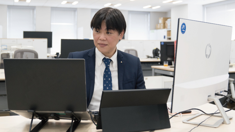 新人研修を経て教育部に配属になり、1年目から「JP1」の研修講師として運営から企画までを担当しました。教育部が各製品事業部に分離された後は、フィールドエンジニアとしてお客様へのご提案や導入に向けた設計のご支援、導入作業を行っています。