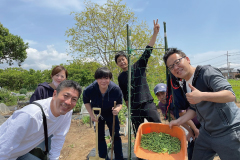 会長のビルさんが「社員とその家族3,000人の食を確保したい」という思いで発足した農業部検討プロジェクトには、農大出身だし、社員の生活を守るという思いに共感して応募しました。幕張、新百合ヶ丘、大阪にレンタル農園を借りて有志で作物を作るというところから開始して、年1回の社員向けイベントとして、農家にお邪魔して収穫体験をしたり、採れたてのお米や野菜を食べたり、味噌作りをしたり、料理教室を開いたりなど活動していました。コロナ禍により活動の見直しもあり、今は有志が作物を作る活動をしながら次の一手を考えているところです。