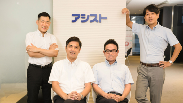 アシストの中日本支社営業部3課は、2022年1〜4月期に新規粗利目標達成率、全社1位に輝きました。当時、この課は、課長を兼任する営業部長の伊藤慈伸さん、ベテラン営業の堤壽輝さん、中堅の米倉宏樹さんと佐藤祐月さん、そして、2022年1月キャリア採用入社の田中克裕さんの5名で構成され、愛知県を中心に、製造業やその他様々な業種の大手顧客を担当しました。