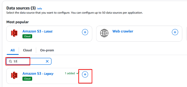 3.Data sorcesの一覧から「S3」と検索し、「Amazon S3 -Legacy」を選択します。