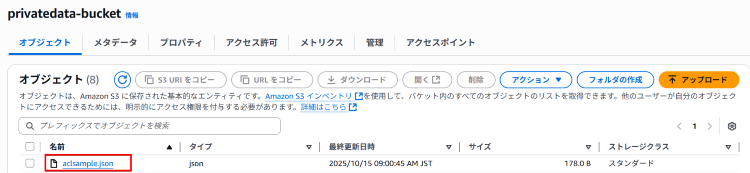 実際にjson形式で記載したACLファイルを対象のS3バケットに配置し、回答の変化を見ていきましょう。