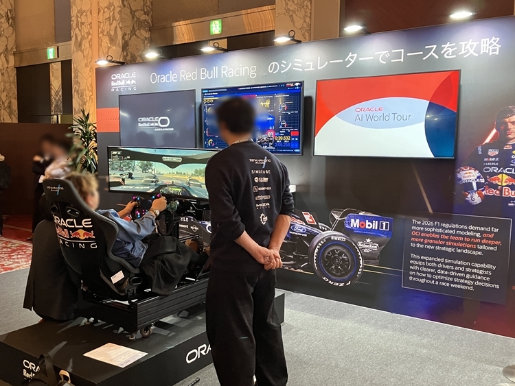 レーシングシミュレーターは今年も大人気で、順番待ちの列が出来上がるほど。AIとOCIを組み合わせたソリューション体験コーナーでは、AIエージェントのデモンストレーションなどもあり、多くの来場者の興味関心を集めていました。