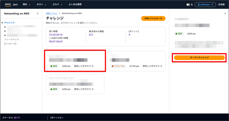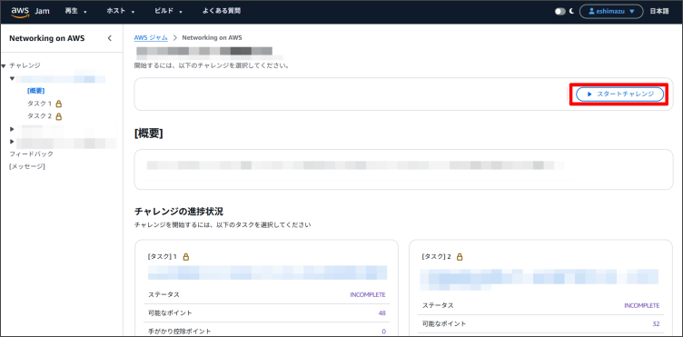 10.選択したチャレンジのページで「スタートチャレンジ」を選択すると裏側で操作に使用するAWS環境が用意されます。