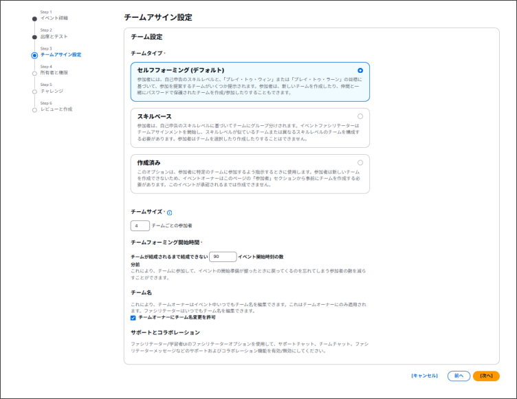 ● チームフォーミング開始時間:イベント開始までにチーム編成が可能となる期間を指定します。