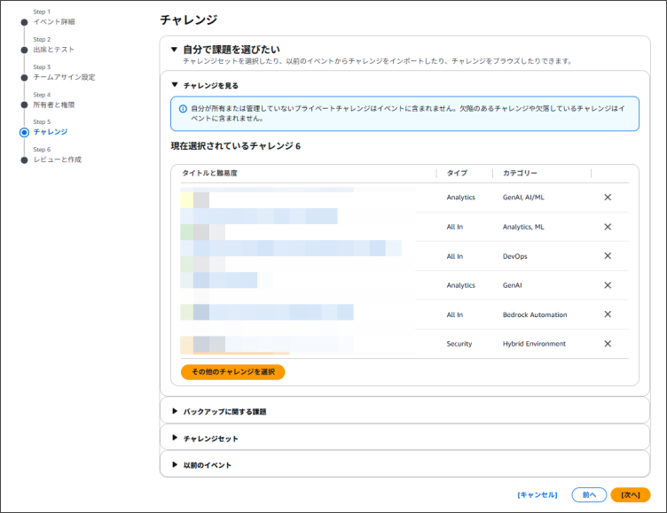 ○ チャレンジセット:AWSから提供されているチャレンジのセットを