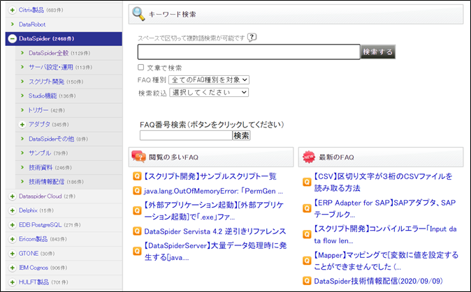 そんな実績豊富なDataSpiderサポートセンターのナレッジをぜひトラブル予防や自己解決に活用いただきたいと考え、よくある質問をまとめたFAQサイトを作成しました。
