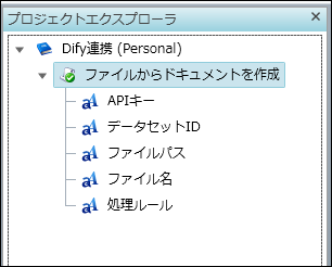 変動要素(APIキー、データセットID、ファイルパス、処理ルールJSONなど)は変数化