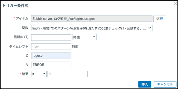 | 関数 | Zabbixにてサポートされている条件判定関数を指定 (例)find |