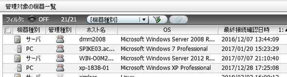 JP1/ITDM2上で管理対象となっている機器の中から、長期に渡って、管理用サーバへ接続されていないものを検索します。