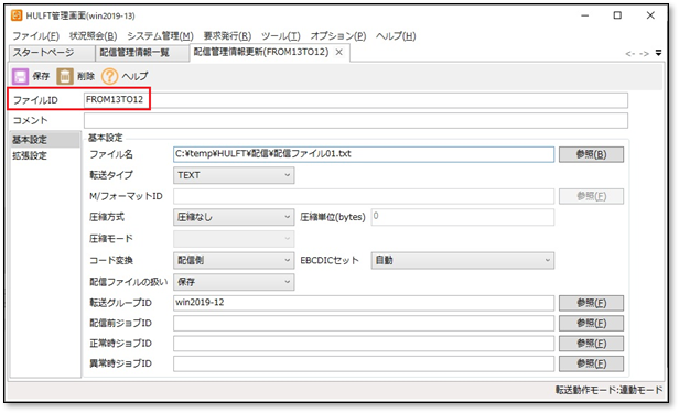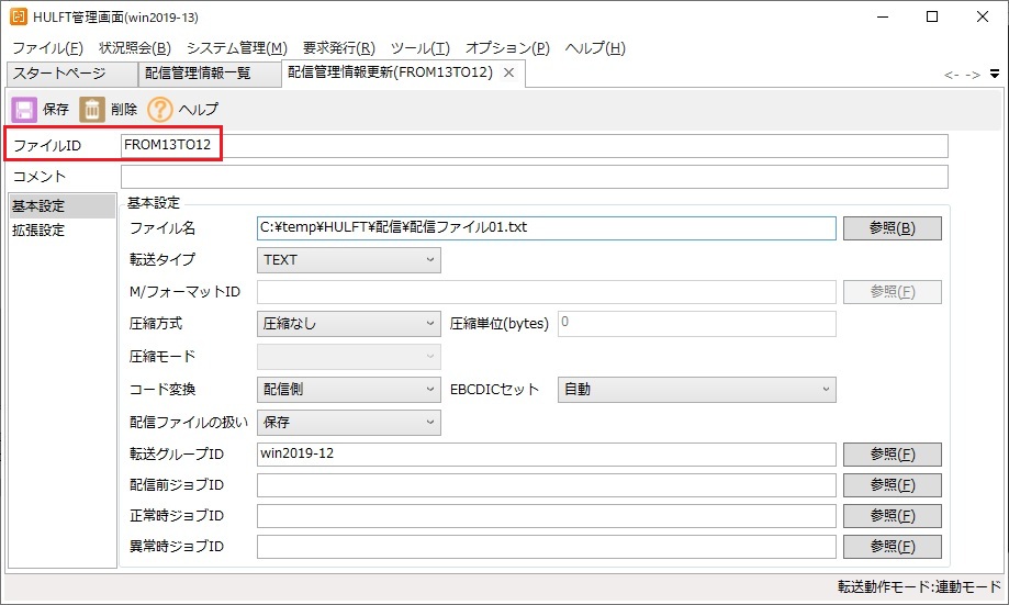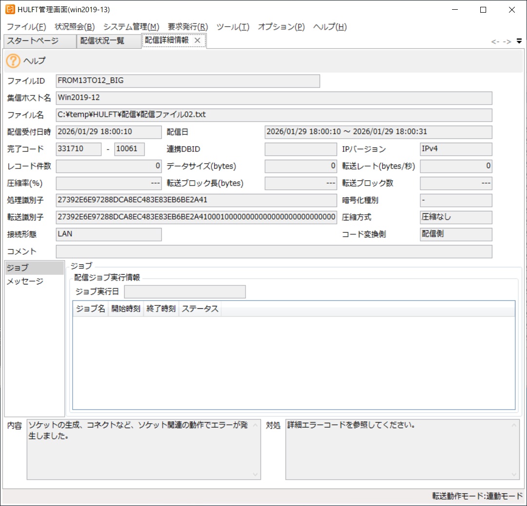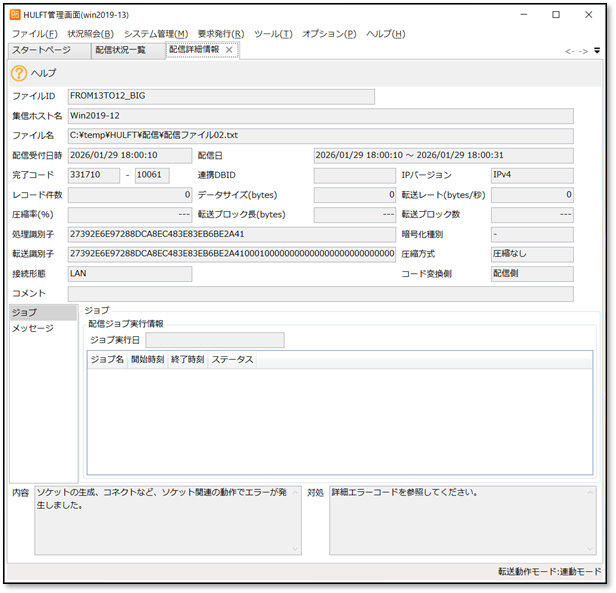 ▼HULFT ー配信詳細情報画面ー