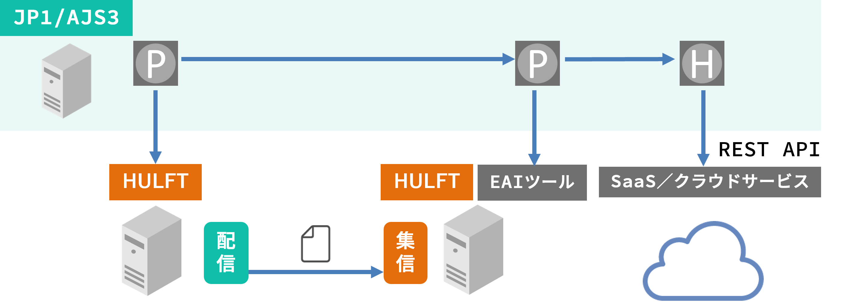 HULFTでファイルを転送した後の取り込み処理や、EAIツール・帳票基盤・SaaS などへの連携処理も、すべて