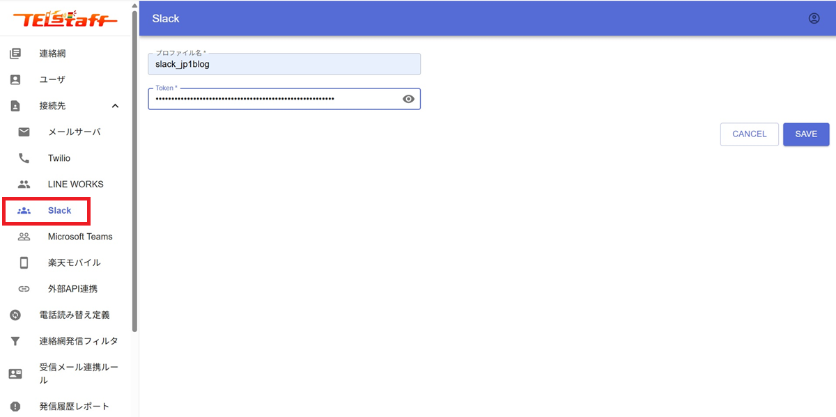 SlackにREST APIを使用して通知する例を元に、実際の通報管理サービスの設定画面を紹介します。