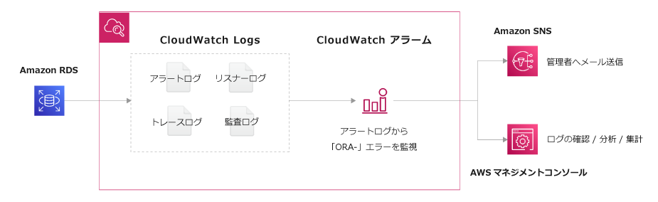 CloudWatch Logsは、ログファイルの監視ができ、RDSコンソールと、CloudWatch Logs コンソールから確認可能です。
