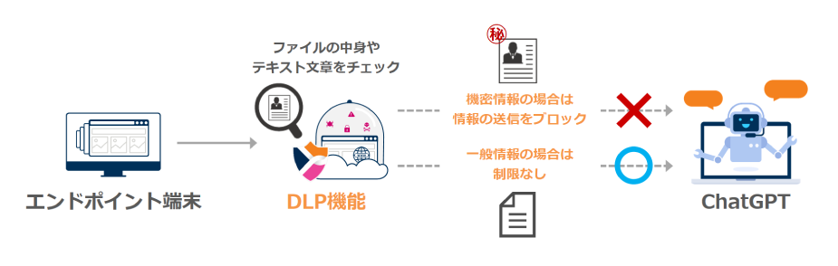 機密情報を含んでいればブロックすることで、情報漏洩のリスクを抑制できるでしょう。