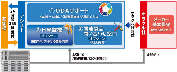 お客様は、Oracle Database Applianceに関するお問い合わせ窓口をアシストに一元化でき、問題の切り分け等の煩わしさやタイムロスから解放されます。