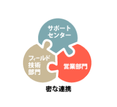 サポートセンターだけでは解決しない課題、緊急性の高い問題には、営業やフィールド技術と密連携し、お客様の課題解決に寄与。(一部サービスは有償)