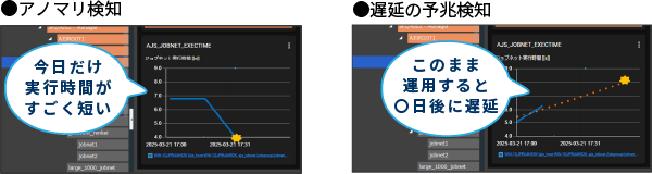 処理の空振りによる実行時間の減少や、通常と異なるジョブ実行時間の増加を検知することができるようになりました。