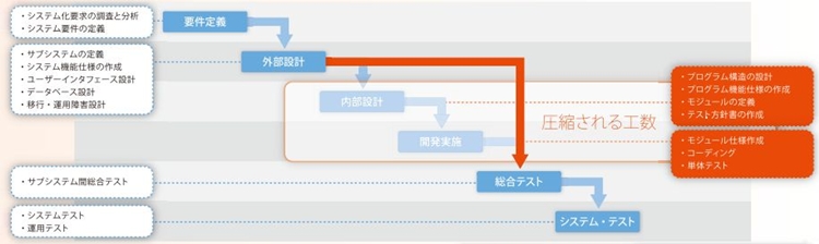 情報システム仕様や業務機能要件変更が発生すると、業務アプリケーション機能を新規開発、改修し、システムに反映させる必要が生じます。保険や金融業をはじめ製造業や医療、建築、その他多くの業界において、ユーザからの頻繁な業務仕様変更が発生するビジネスでは、システム開発と機能変更をいかに迅速化できるかがビジネスのスピード感に直結することになります。