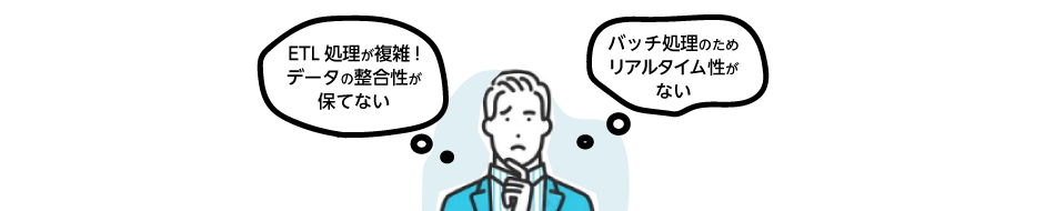 バッチ(ETL)処理でデータ抽出加工しておりデータの鮮度やデータ整合性に問題がある