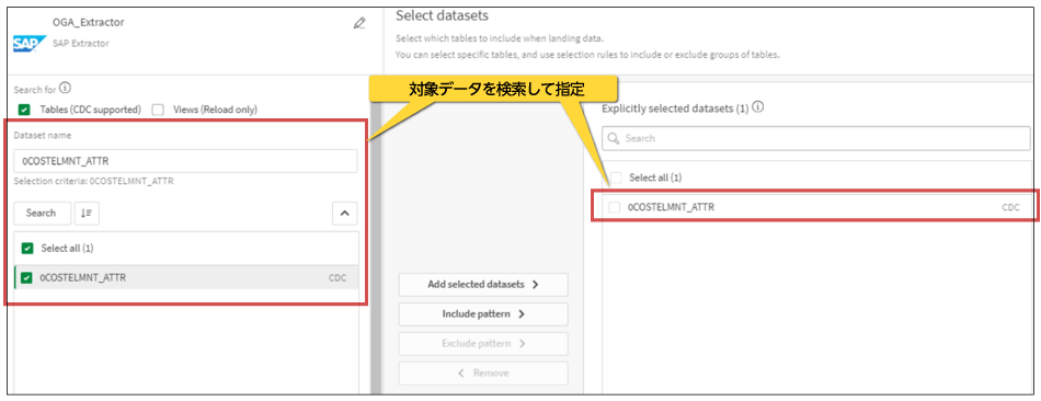 ・SAPのデータソースを指定します(0COSTELMNT_ATTR)