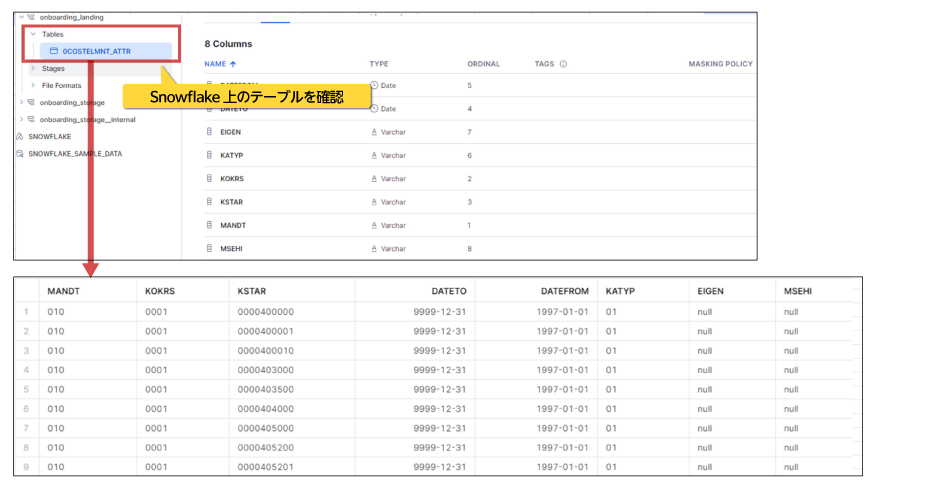 ・Snowflake側に自動的にテーブルが作成されデータがフルコピーされます
