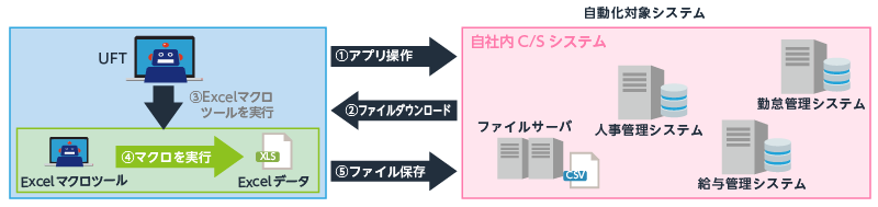 UFT Oneで作成した自動化処理の中で最も効果が出たのが、勤怠管理における勤怠データの加工・処理業務でした。RPA適用前は、担当者が手動で勤怠管理システムなどから必要データを抽出してExcelで加工後、完成したExcelファイルをメールで各所に送付するという作業を約6時間かけて実施していました。適用後はExcelファイル完成までをUFT Oneで自動化しているため、担当者が行うのは最終工程のExcelファイルをメール添付して送信する作業のみです。時間にして約6時間かかっていた作業が、30分弱にまで大きく短縮されました。 |