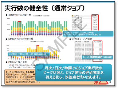 そこでアシストでは、お客様の実環境の情報を基にデータベース、ジョブ実行数、実行環境面でのアセスメントを行い、評価レポートをご提供するサービスをご用意しています。バージョンアップを機に、現行のJP1/AJS3の健康診断をしてみませんか?