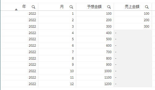 4月から12月までの「売上金額」はNullのため、選択することができません。