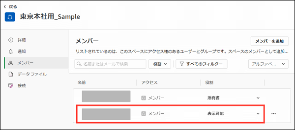 8)右上[スペースの詳細]をクリックし、[メンバー]を選択します。