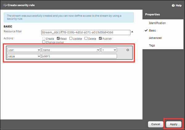 5)[Create security rule]画面で、ストリームへのアクセス制御を行います。