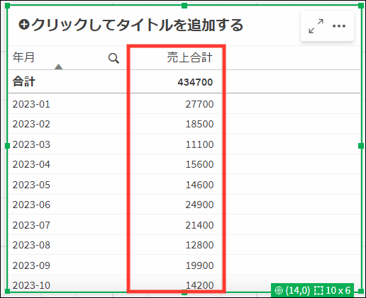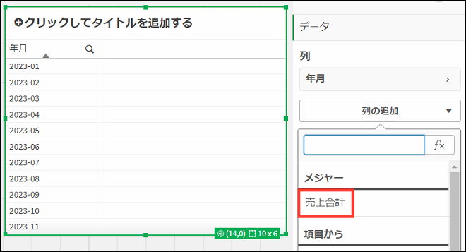 4) シートの編集画面に戻り、色の指定を行ったマスター アイテムのメジャーを、チャートに設定します。