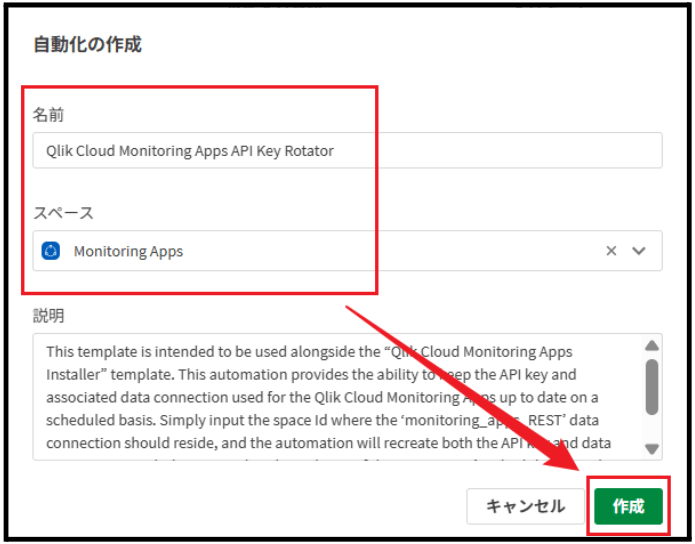 「Qlik Cloud Monitoring Apps API Key Rotator」テンプレートは、「Qlik Cloud Monitoring Apps