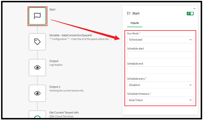 Qlik Automateを実行するスケジュールの曜日・時間・タイムゾーンなど任意で設定します。