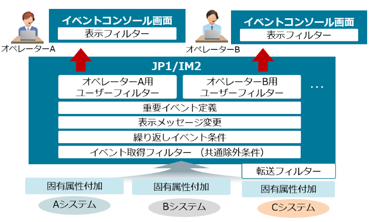 JP1/IM(JP1/IM2)はバージョンが上がるごとに、フィルター機能が充実してきているので、バージョンアップすることでお客様の運用に適した機能がご提案できそうです。また、重大度の変更等の視認性向上、管理者の対応の改善につながる機能もJP1/IM2では多く実装されています。