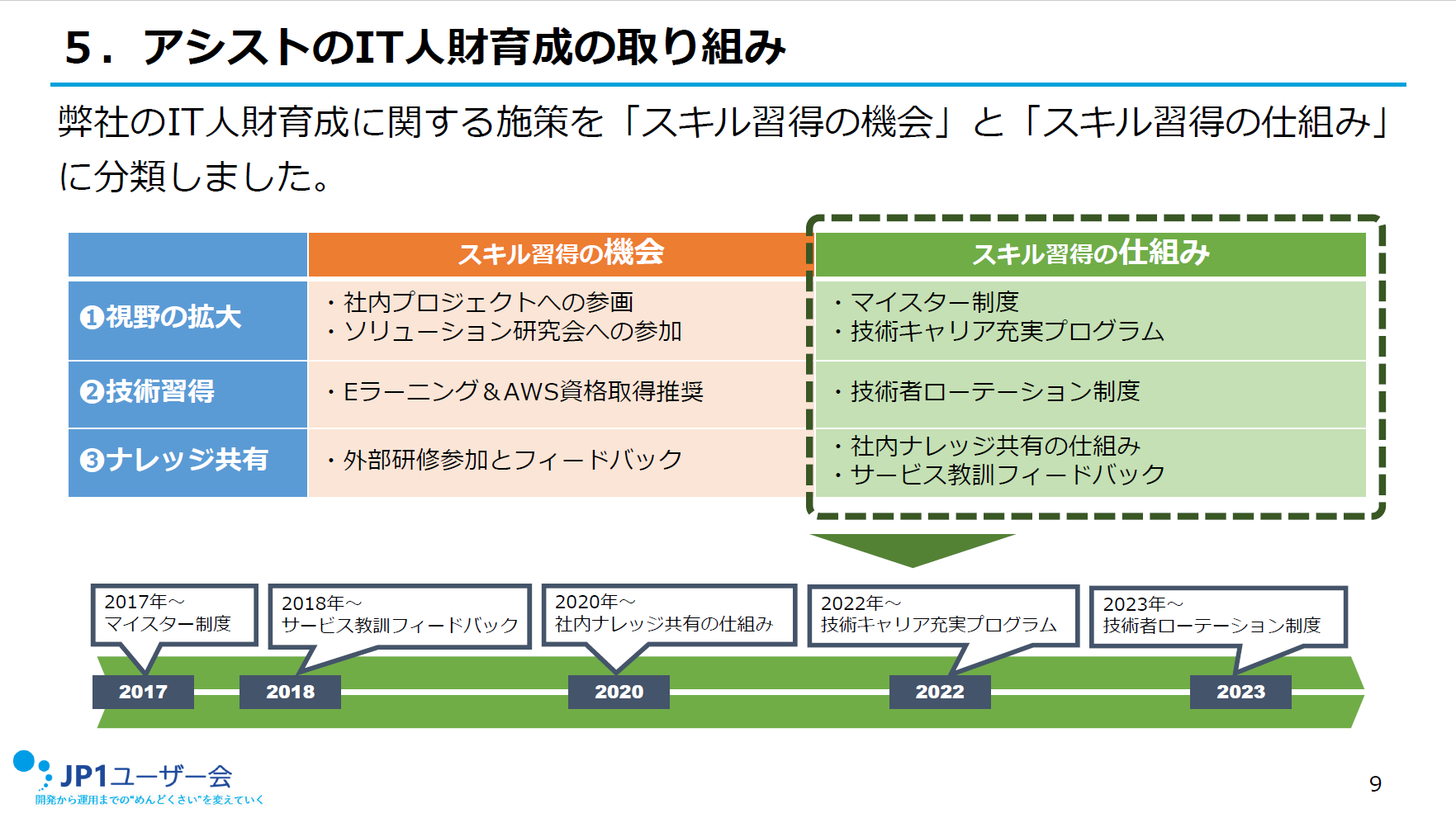 本セッションでは、人財育成のヒントとなるようなアシストの技術者育成の取り組み事例をご紹介しました。